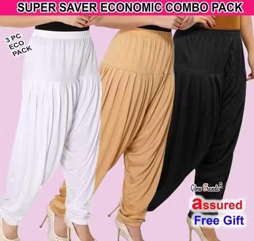 WOMEN PATIALA PANT PACK OF 3 | SOFT VISCOSE FABRIC| SIZE : XL,XXL|REGULAR RELAX FIT|COLORS : BLACK-WHITE-SKIN