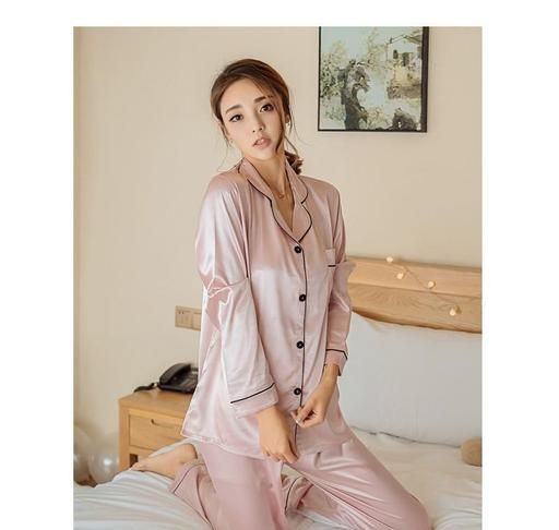 Name: Soft comfortable non transparent SATIN SILK full night suit set for women