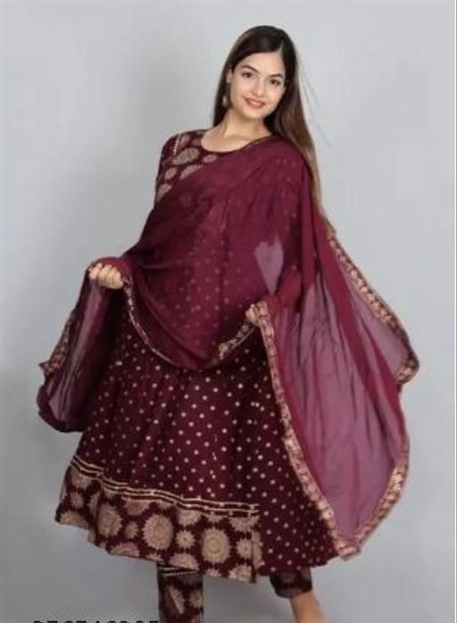 Name: Anarkali Dupatta Set" Women's Printed "Anarkali Kurti" & Pant Dupatta Set