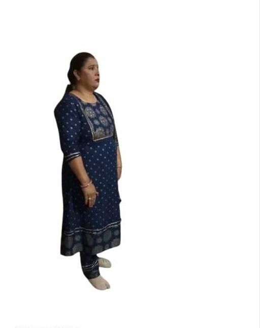 "Anarkali Dupatta Set" Women's Printed "Anarkali Kurti" & Pant Dupatta Set "Summer Fashion 2023" (Navy-blue)
