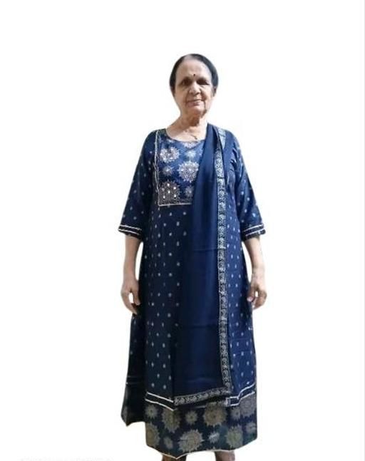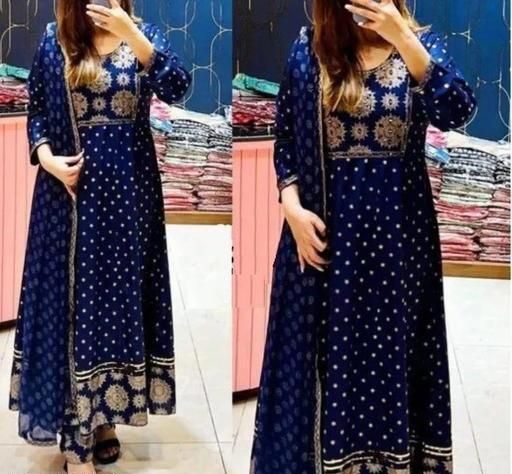 Name: "Anarkali Dupatta Set" Women's Printed "Anarkali Kurti" & Pant Dupatta Set "Summer Fashion 2023" (Navy-blue)
