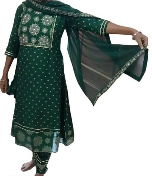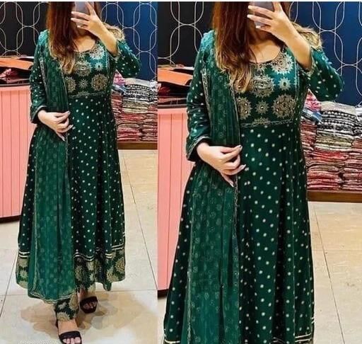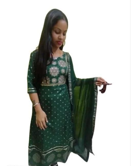 Anarkali Dupatta Set" Women's Printed "Anarkali Kurti" & Pant Dupatta Set