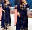 "Anarkali Dupatta Set" Women's Printed "Anarkali Kurti" & Pant Dupatta Set "Summer Fashion 2023" (Navy-blue)