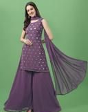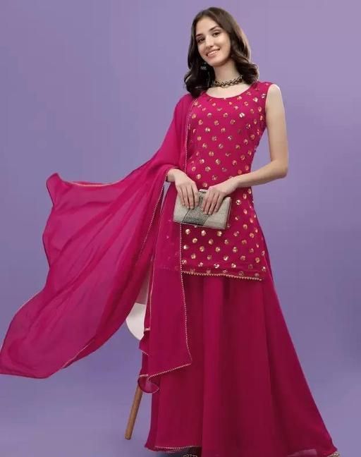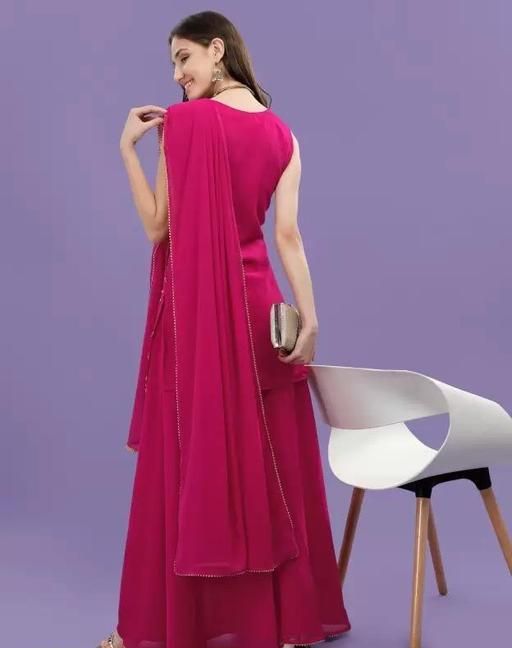 Name: Women Kurta, Sharara and Dupatta Set Georgette (Rani Pink)