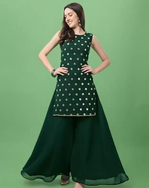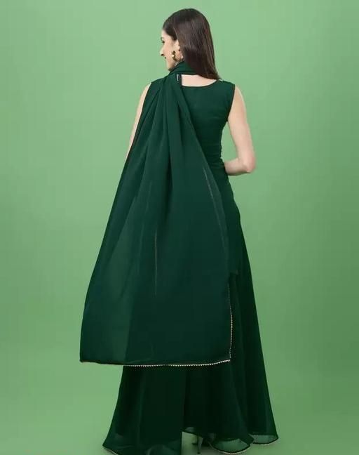 Name: Women Kurta, Sharara and Dupatta Set Georgette (Green)