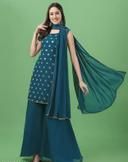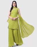 Women Kurta, Sharara and Dupatta Set Georgette (Green)