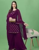 pure blooming georgette sequinned embroidered sharara set with dupatta is a beautiful ethnic wear option that you can style on so many occasions. This ethnic kurta sharara set has full flared straight sharara with solid georgette dupatta having tapping lace border details. This graceful garment set comprises a kurti and sharara and is often accompanied by a dupatta or ethnic jacket. Purchasing a set makes styling an easy task, as it would comprise both the top and the bottomwear to create a complete outfit.