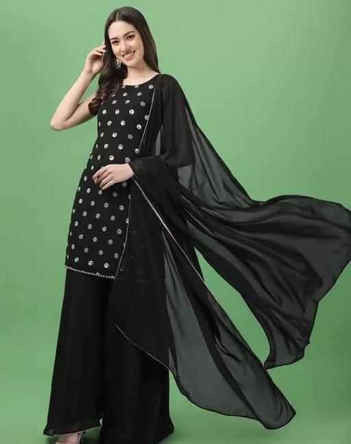 Name: Women Kurta, Sharara and Dupatta Set Georgette (Rich Black)
