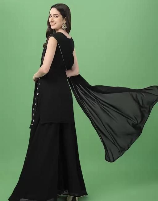 Women Kurta, Sharara and Dupatta Set Georgette (Rich Black)