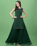 pure blooming georgette sequinned embroidered sharara set with dupatta is a beautiful ethnic wear option that you can style on so many occasions. This ethnic kurta sharara set has full flared straight sharara with solid georgette dupatta having tapping lace border details. This graceful garment set comprises a kurti and sharara and is often accompanied by a dupatta or ethnic jacket. Purchasing a set makes styling an easy task, as it would comprise both the top and the bottomwear to create a complete outfit.