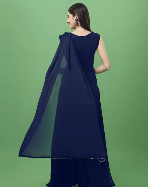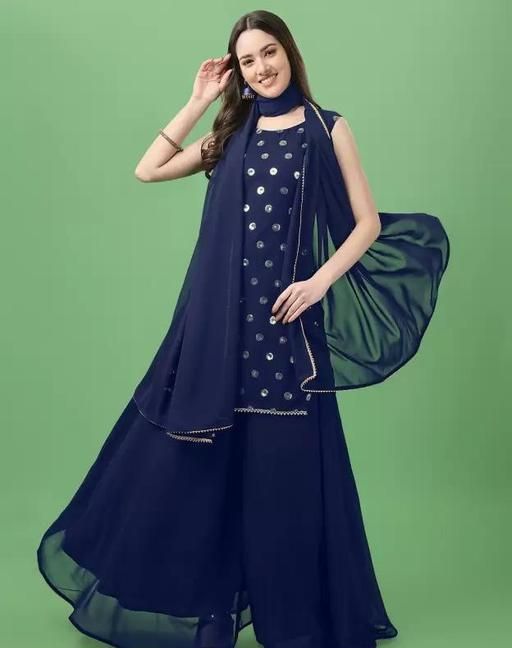 Name: Women Kurta, Sharara and Dupatta Set Georgette (Navy Blue)
