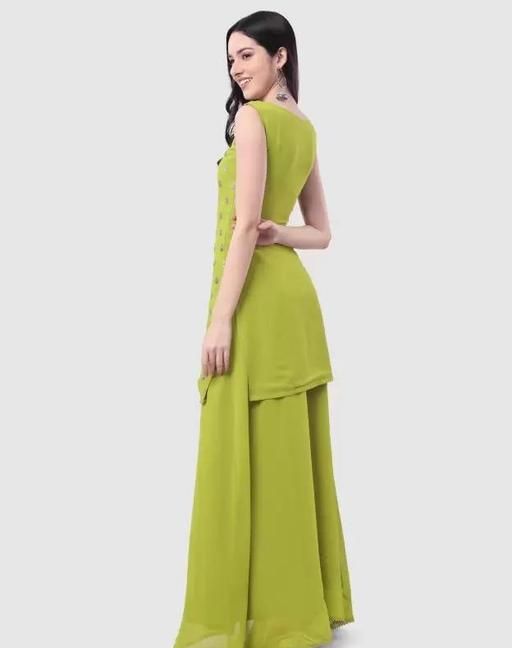 Women Kurta, Sharara and Dupatta Set Georgette (Parrot Green)