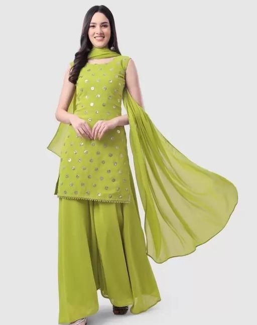 Name: Women Kurta, Sharara and Dupatta Set Georgette (Parrot Green)
