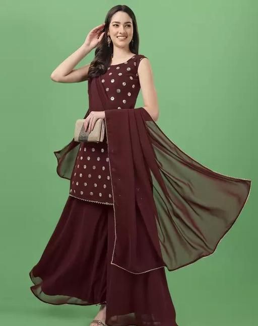 Name: Women Kurta, Sharara and Dupatta Set Georgette (Cofee Brown)