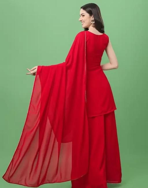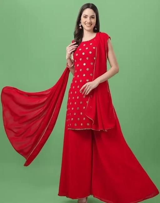 Name: Women Kurta, Sharara and Dupatta Set Georgette (Red)