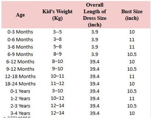 3-4 Years (Bust Size: 10 in, Length Size: 100 in)