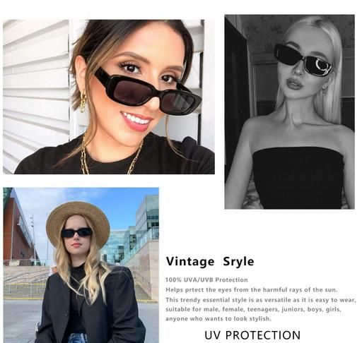 Name: Pack of 1 Black Retro Rectanglular Sunglasses for Women Retro Driving Sunlgasses Vintage Fashion Narrow Square Frame UV400 Protection for Women