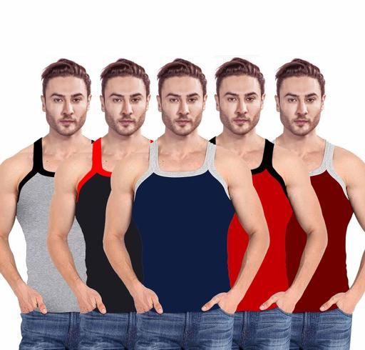 Mens Comfort Fit Gym Vest- Pack of 5pcs- Stretchable Lycra Quality