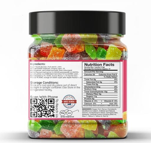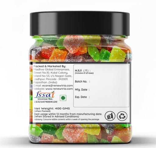 Name: RENEWTRIA Fruit Jelly Bites/ Jelly Candy /Jelly Toffee |Jelly Beans -400Gram Jar Pack Orange, Lemon, Colo, Multi Jelly Candy (400 g)