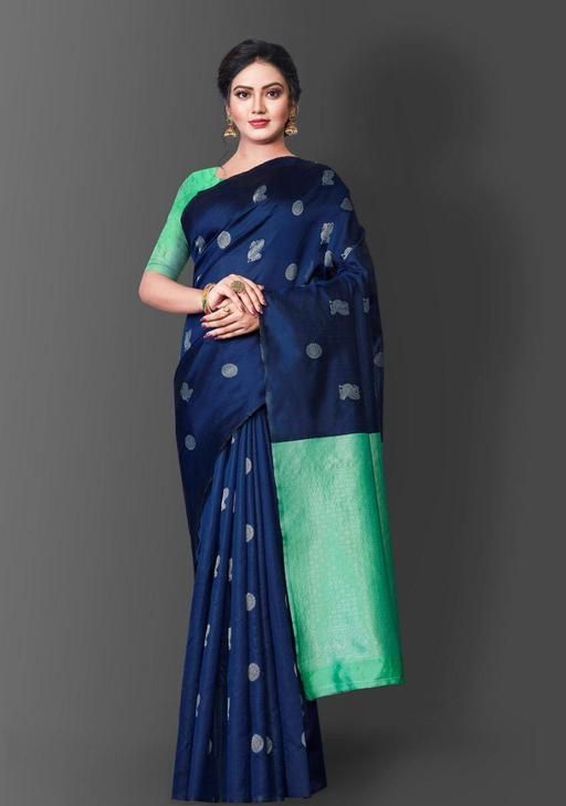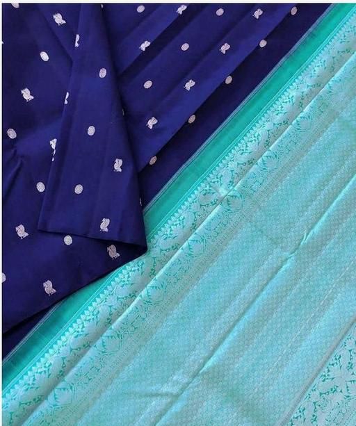 Aqua Blue Color Designer Traditional Banarasi Silk Saree With Contrast Blue Blouse Attached With Saree, Saree Description : Saree Fabric : Banarasi Silk Latest Design | Color : Blue , Saree Has No Border For Simplified Look , Saree Has Beautiful Peacock Motif In Saree , sarees for women latest design Comes With 4 Different Color With Affordable Price