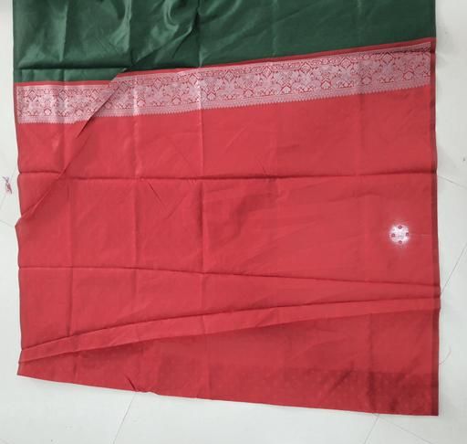 Dark Green Colo Light Weight Saree under 500 Comes With Contrast red blouse and red pallu