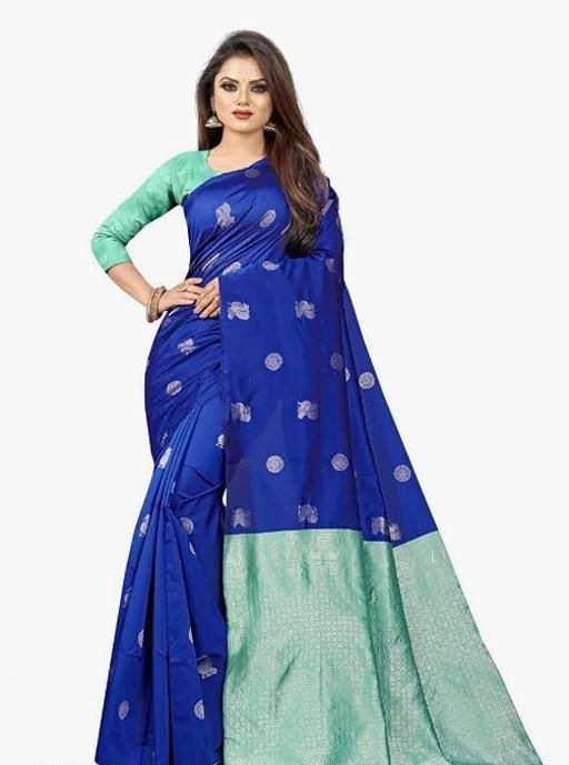 Aqua Blue Color Designer Traditional Banarasi Silk Saree With Contrast Blue Blouse Attached With Saree, Saree Description : Saree Fabric : Banarasi Silk Latest Design | Color : Blue , Saree Has No Border For Simplified Look , Saree Has Beautiful Peacock Motif In Saree , sarees for women latest design Comes With 4 Different Color With Affordable Price