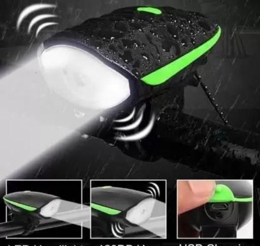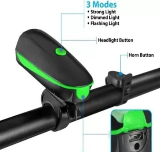 Name: 2-in-1 USB Rechargeable Cycle Light (3 Modes) LED Front Light with Horn/Cycle Lights Rechargeable Waterproof (140 dB) Cycle Light with Horn (Green)