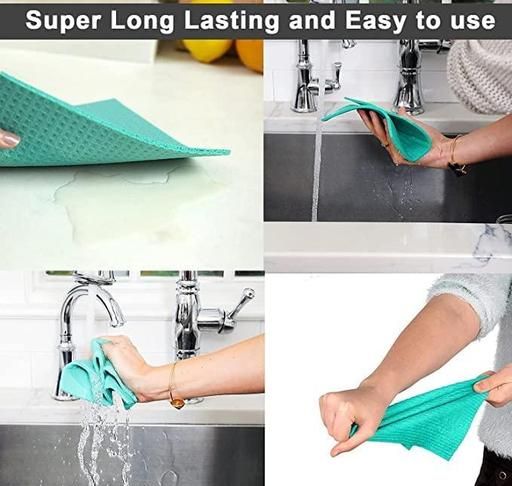 Cleaning dining tables and shining kitchen counters just a swipe away. This is a new and improved way of keeping your precious surface and ensuring it get the special treatment it deserve. The high quality celluloid based material is able to absorb 10 times its weight .The cellulose based sponge cleans any mess in a single swipe and the best part is that it does not leave behind any water marks while swiping.