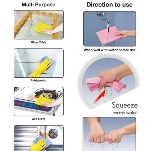 Cleaning dining tables and shining kitchen counters just a swipe away. This is a new and improved way of keeping your precious surface and ensuring it get the special treatment it deserve. The high quality celluloid based material is able to absorb 10 times its weight .The cellulose based sponge cleans any mess in a single swipe and the best part is that it does not leave behind any water marks while swiping.