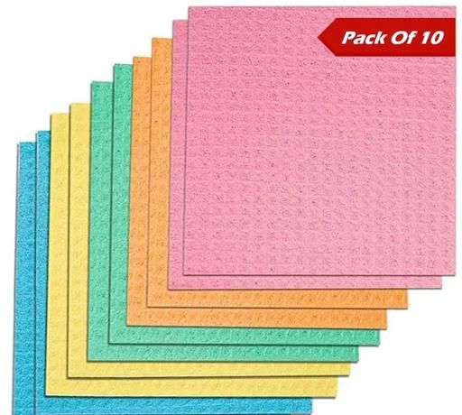Kitchen Cleaning Sponge Wipes with Super Absorbent Biodegradable Cellulose Material for Kitchen and Home Cleaning (Pack of 10)