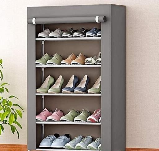 Name: SANSIM SALES Multipurpose 5-Tiers Shoe Rack With Dustproof Zip Cover, Multiuse Wide Space Storage Rack Made By Non Woven Fabric For Footwear, Toys, Clothes (5 Shelves G) Plastic Non Woven