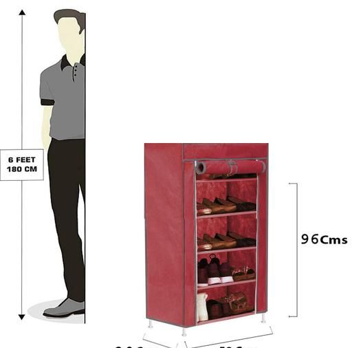 Name: SANSIM SALES Multipurpose 5-Tiers Shoe Rack With Dustproof Zip Cover, Multiuse Wide Space Storage Rack Made By Non Woven Fabric For Footwear, Toys, Clothes (6 Shelves G) Plastic Non Woven