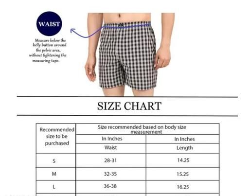 Assorted check boxer shorts with one back pocket ; Inner waist band with soft brushed elastic