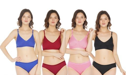 SOLID BRA PANTY SET PACK OF 4 COMBO SET
