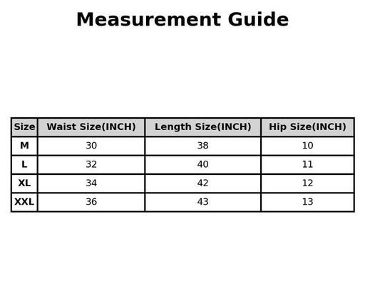 XL (Waist Size: 34 in, Length Size: 42 in, Hip Size: 12 in)