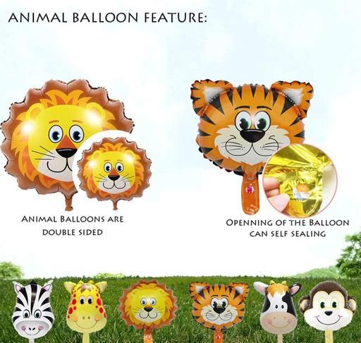 Name: Small Jungle Theme Party Decoration Foil Balloons - 6Pcs Set For Safari Or Animal Theme Birthday Party Decorations/ Jungle Theme Balloons /Animal Balloons For Birthday Party Decoration Balloon (Multicolor, Pack of 6)