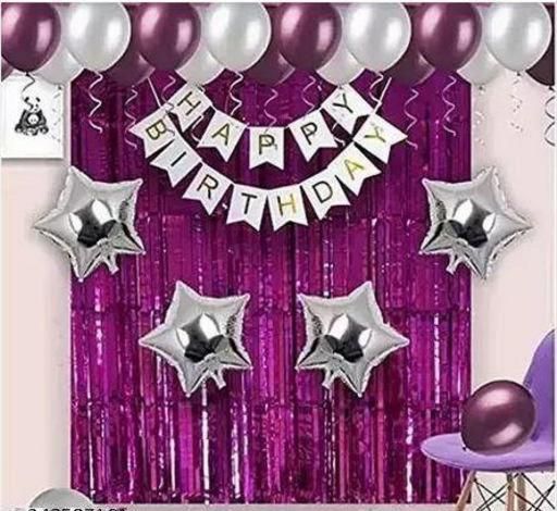 Name: 4 Star Combo Set With Pink Silver Balloon 20 Pcs , 2 Pink Curtain