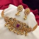Vivanta design was manufacturer this jewelleryset Bast quality ever and Gold-plated Matte glass drop Temple Style Laxmi Choker Jewlery Set ["earring" "jewellery" "bangle" "necklace" "ring" "mangalsutra" "bracelet" "jewellery set" "jhumka" "anklet" "nosepin" "necklace set"
