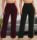 Trendy Women Regular Fit Black, White Cotton Blend Trousers Combo Pack Of 2