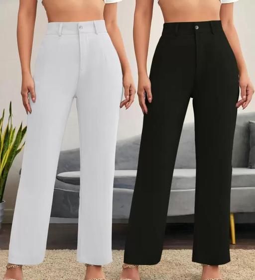 Name: Trendy Women Regular Fit Black, White Cotton Blend Trousers Combo Pack Of 2