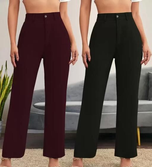 Name: Trendy Women Regular Fit Black, Maroon Cotton Blend Trousers Combo Pack Of 2