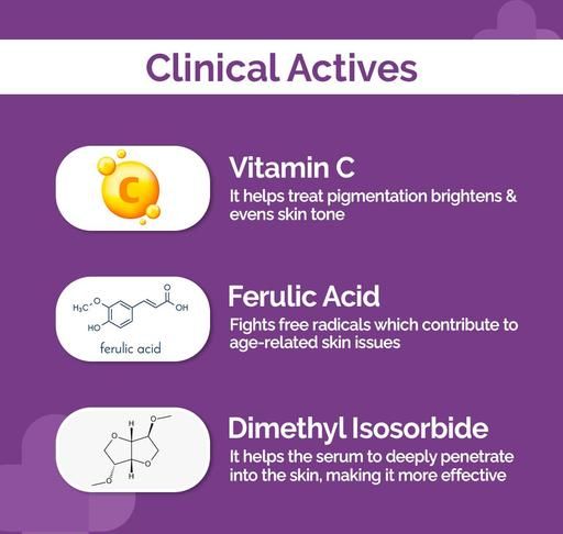 We are here to make one thing very clear and that’s your skin! It’s time to get addicted to skin illumination with our 5% Vitamin C Daily Face Serum that in combination with the power of Ferulic Acid lightens pigmentation and dark spots while making your skin glow. Vitamin C's antioxidant and anti-inflammatory properties help fight free radicals damage, signs of premature aging, & provide an even tone skin. Did we tell you about the cell renewal and rejuvenation properties of this serum? All thanks to the multivitamin that makes this serum a must-have in your skincare regimen. We’ve saved the best for the last - this serum is powered with penetration booster that helps the serum to deeply penetrate into the skin, making it super effective even with a lower percentage of Vitamin C.
