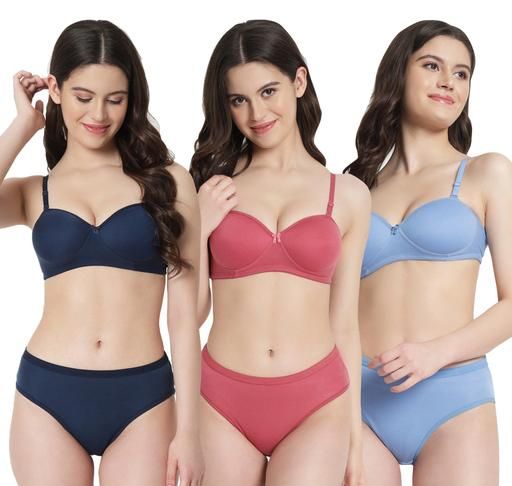 Name: SHRI TRADERS Women's Cotton Lightly Padded Half Cup Wirefree Regular Wear Bra and Panty Honeymoon Bikni Lingerie Set Combo Pack Of 3