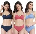 SHRI TRADERS Women's Cotton Lightly Padded Half Cup Wirefree Regular Wear Bra and Panty Honeymoon Bikni Lingerie Set Combo Pack Of 3