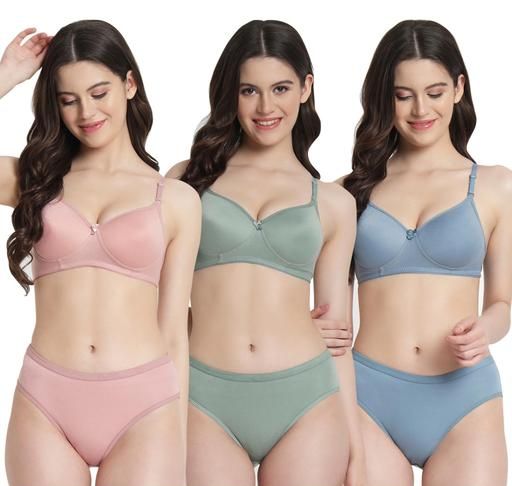 Name: SHRI TRADERS Women's Cotton Lightly Padded Half Cup Wirefree Regular Wear Bra and Panty Honeymoon Bikni Lingerie Set Combo Pack Of 3