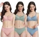 SHRI TRADERS Women's Cotton Lightly Padded Half Cup Wirefree Regular Wear Bra and Panty Honeymoon Bikni Lingerie Set Combo Pack Of 3