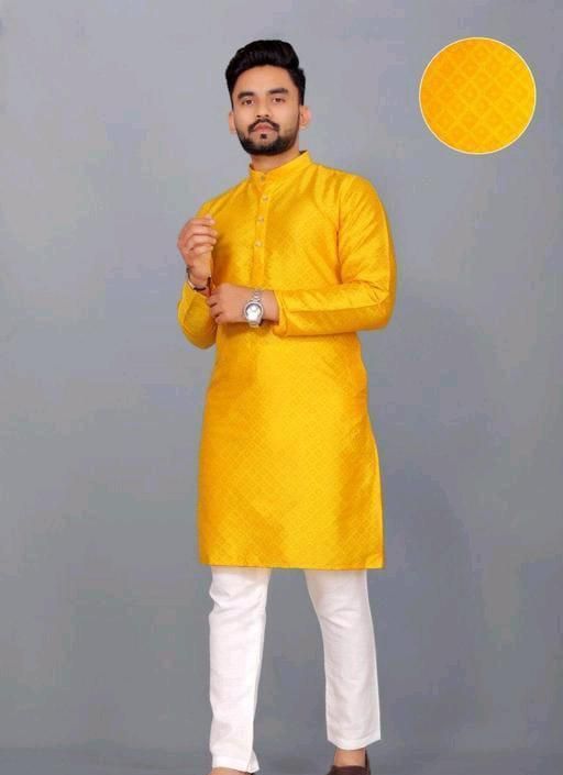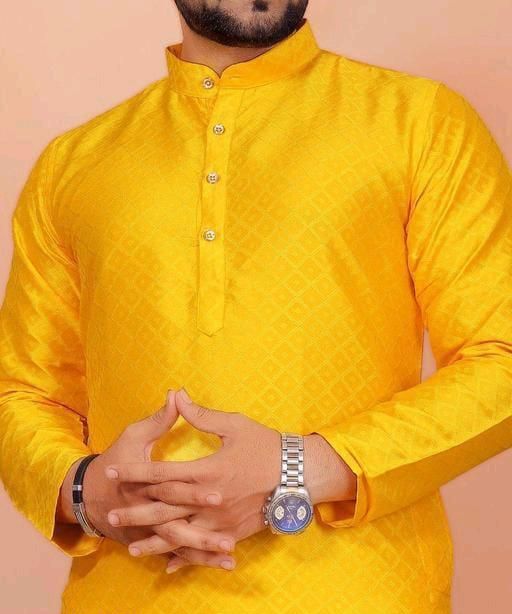 Name: Mens Ethnic Yellow Jacquard Fancy Kurta