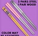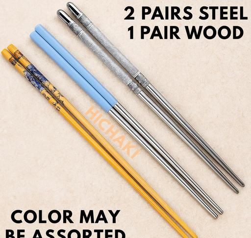 Name: HICHAKI 3-Pair Chopsticks Set – 2 Pairs Blue & Grey Stainless Steel & 1 Pair Wooden Brown – Reusable, Lightweight, Non-Slip Square Grip Korean & Chinese Style, Sushi & Hotpot (Multicolor)