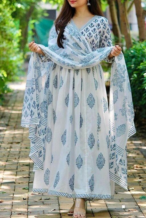anarakali kurti dupatta blue