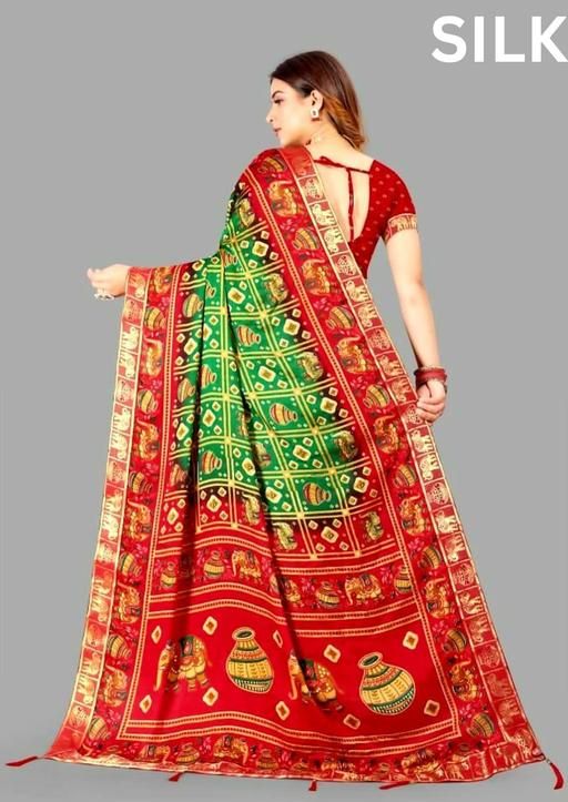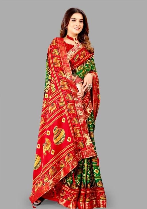 Name: Green Patola Saree (Silk)Tassels and Latkens With Running Blouse